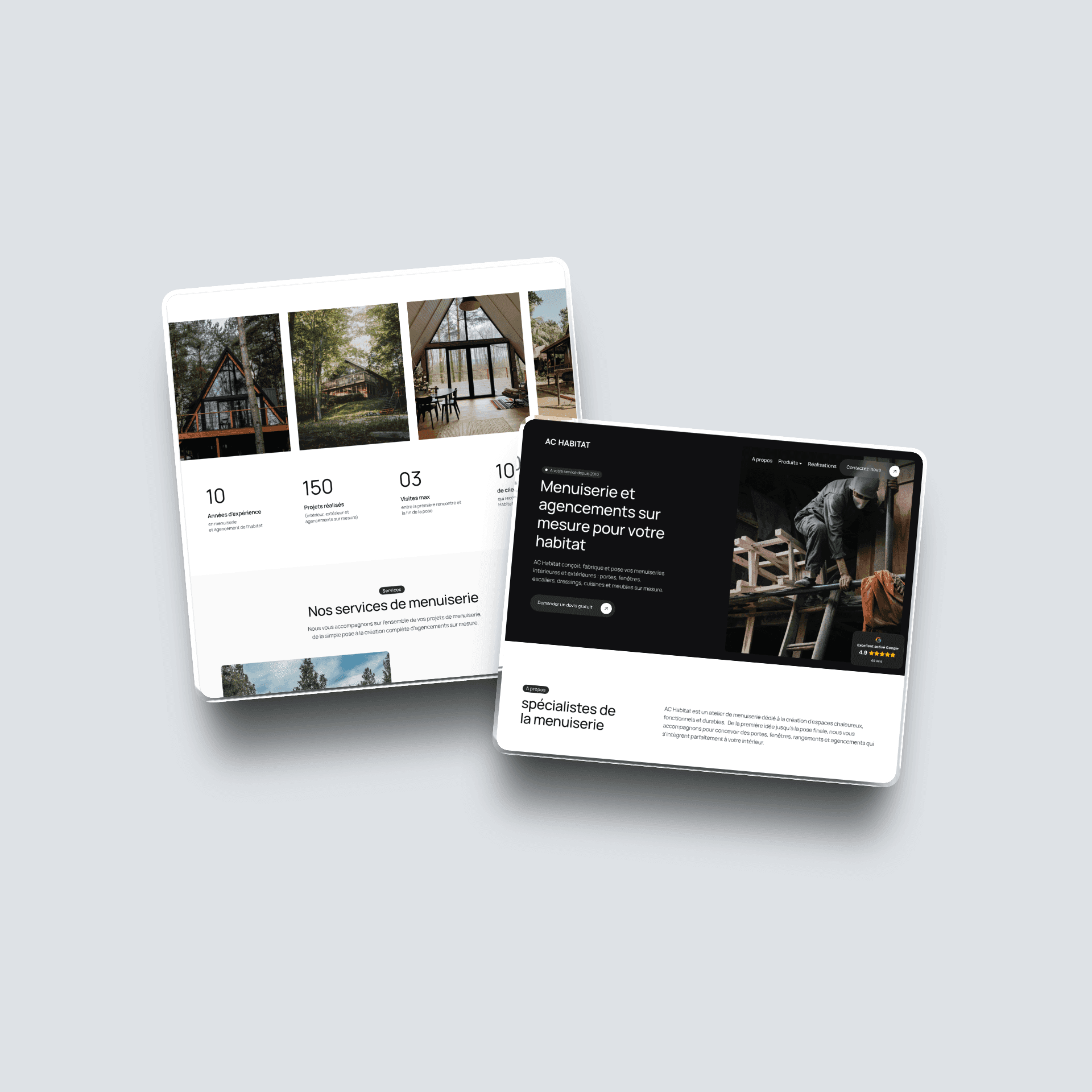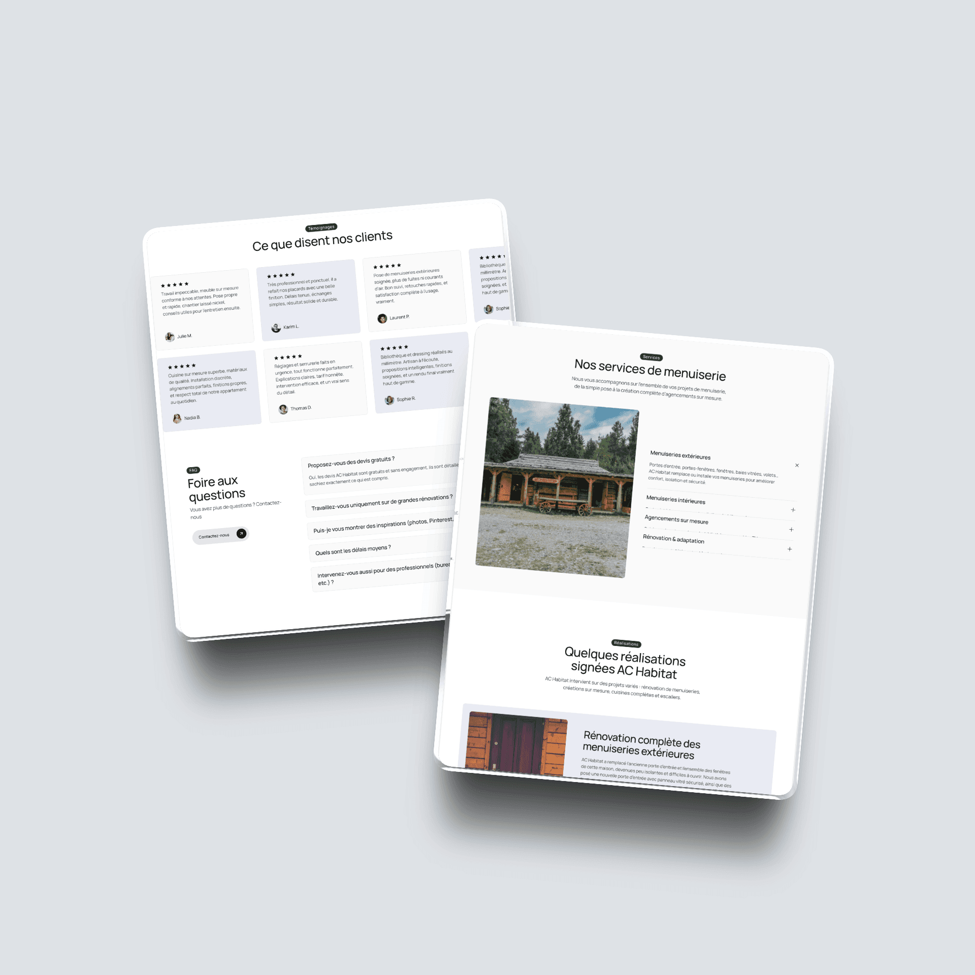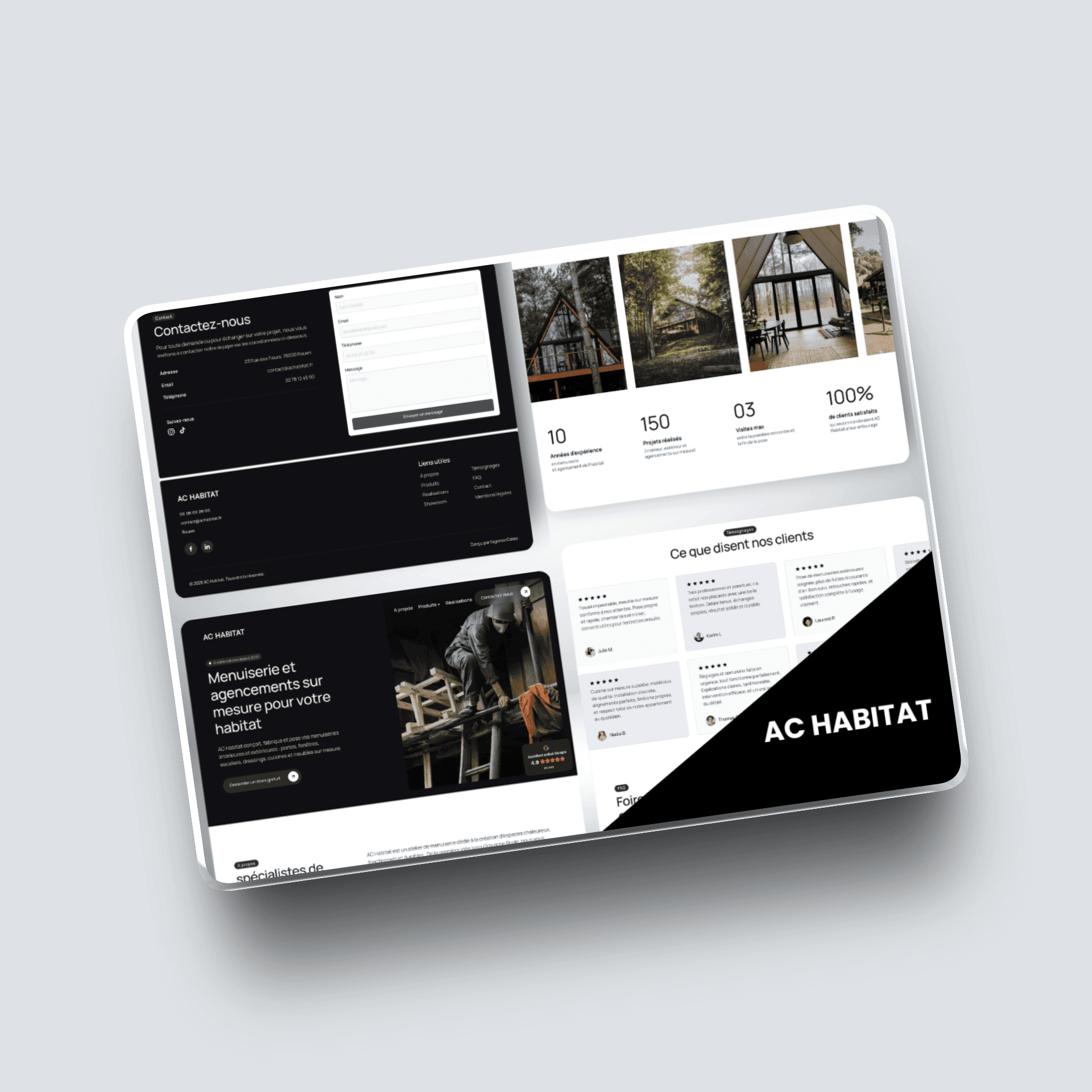 La navigation met l’accent sur l’essentiel : les services, les réalisations, les avis clients et les moyens de contact rapides. Le visiteur comprend immédiatement ce que fait AC Habitat, pour qui, et surtout pourquoi la qualité est au cœur de chaque intervention.