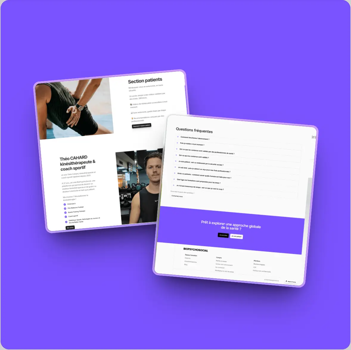 Biopsychosocial n’est pas juste une plateforme : c’est un trait d’union entre le thérapeute et le patient, entre la science et la pratique. Le site incarne cette vision holistique à travers une identité forte, un espace connecté pensé pour favoriser l’apprentissage et l’autonomie, et une architecture qui valorise le lien humain. Il devient un véritable outil au service d’une santé durable, partagée et active.