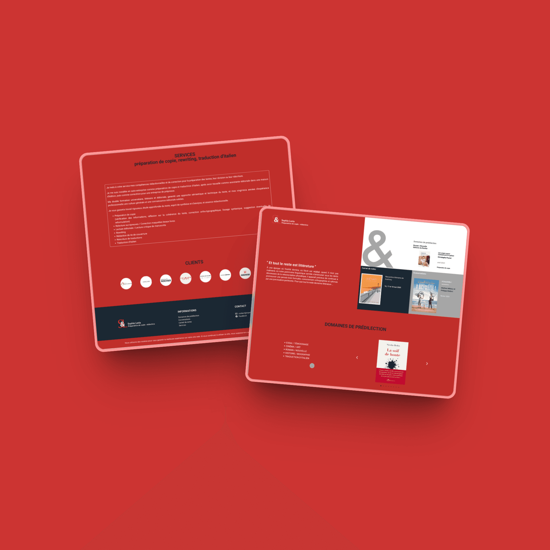 Le site Esperluette SL reflète un univers littéraire exigeant et profondément humain. À travers une structure fluide et un design épuré, il présente avec clarté les services proposés : préparation de copie, rewriting, traduction d’italien, relecture, rédaction de 4e de couverture, lectures critiques et interviews dans les domaines du cinéma, de l’art et de la littérature.