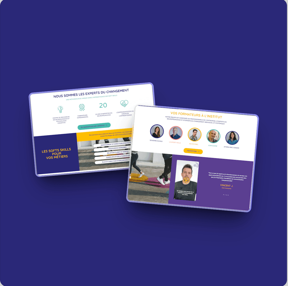 Chaque page a été pensée pour maximiser l’expérience utilisateur, renforcer la crédibilité de l’institut et convertir efficacement les visiteurs : entreprises, managers, RH et professionnels en reconversion.