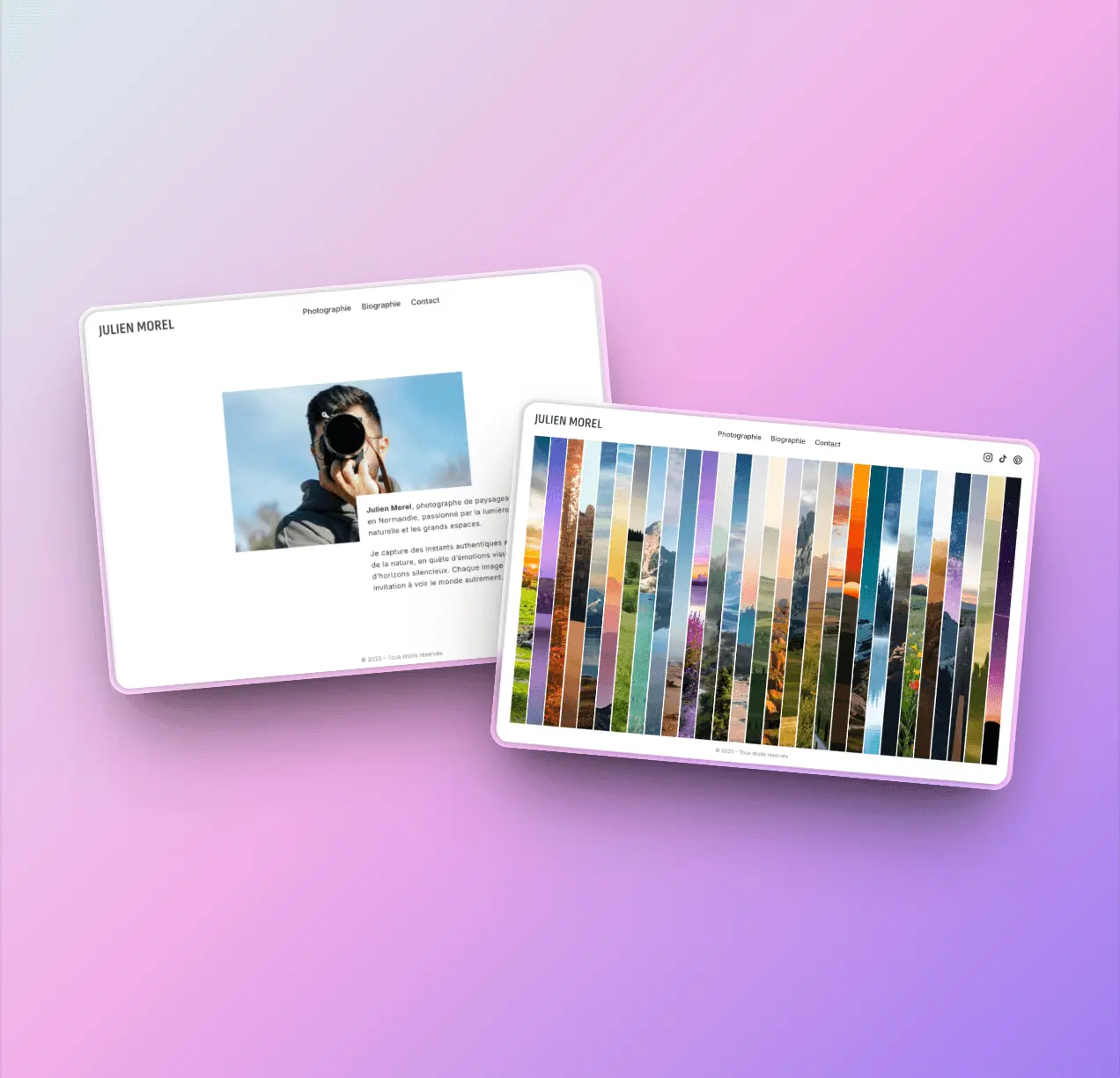 Le site de Julien Morel a été conçu comme une immersion dans son univers visuel : une nature brute, apaisante et grandiose. Il ne s’agit pas seulement d’une galerie d’images, mais d’un véritable carnet de voyage photographique, qui met en valeur la richesse des paysages français et européens.