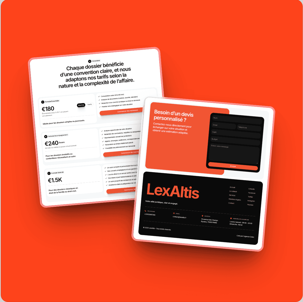 En résumé, LexAltis n’est pas seulement un cabinet d’avocats : c’est un partenaire stratégique pour les entreprises. Le site incarne cette vision à travers un design professionnel, une structure claire et un discours rassurant. Il devient un levier de communication essentiel, au service de la notoriété du cabinet et de sa relation client.